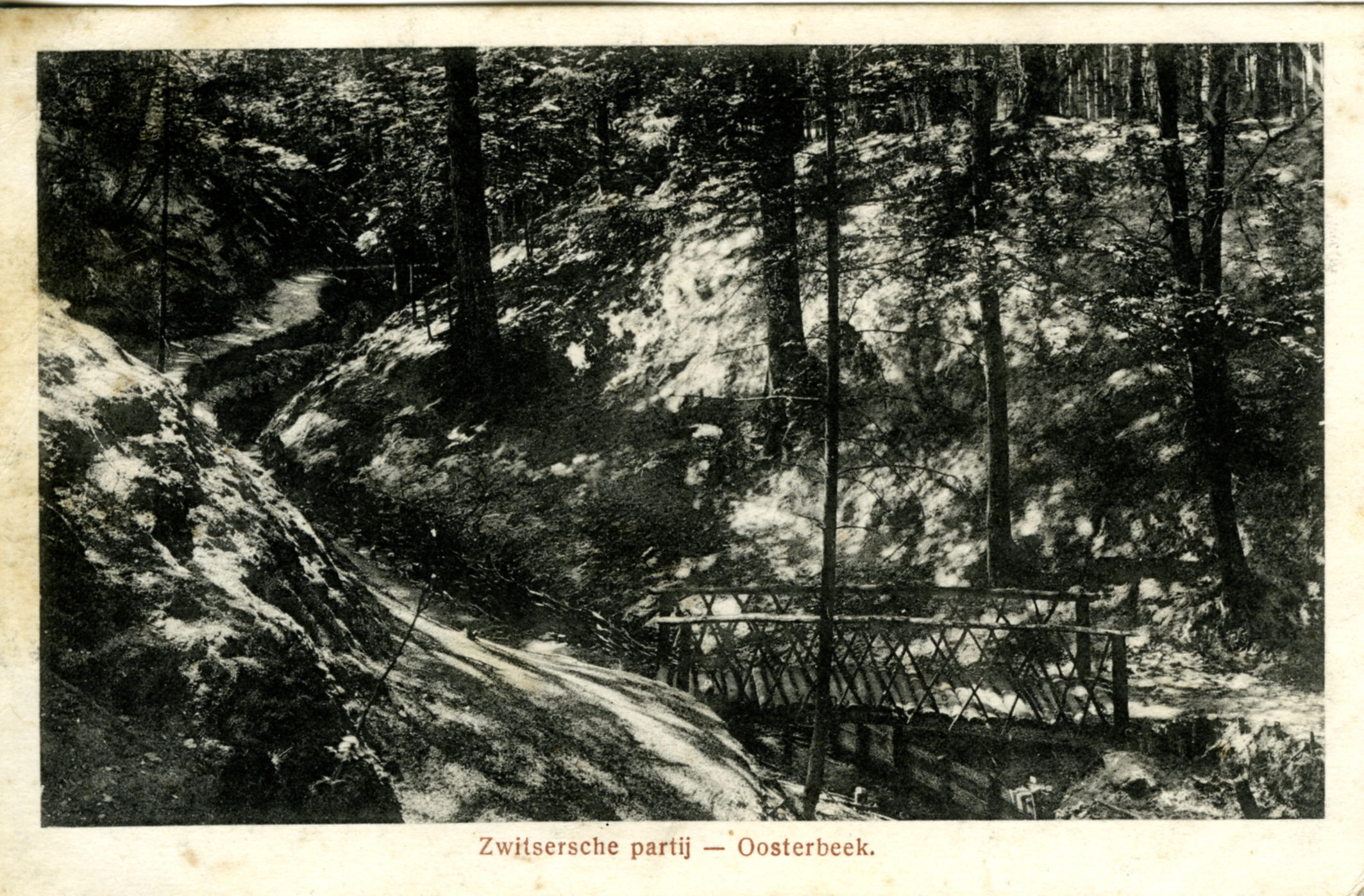 De 'Zwitsersche Partij' over de Slijpbeek, ook wel Mariëndaalsebeek of Klingelbeek, op het terrein van landgoed Mariëndaal in Oosterbeek.