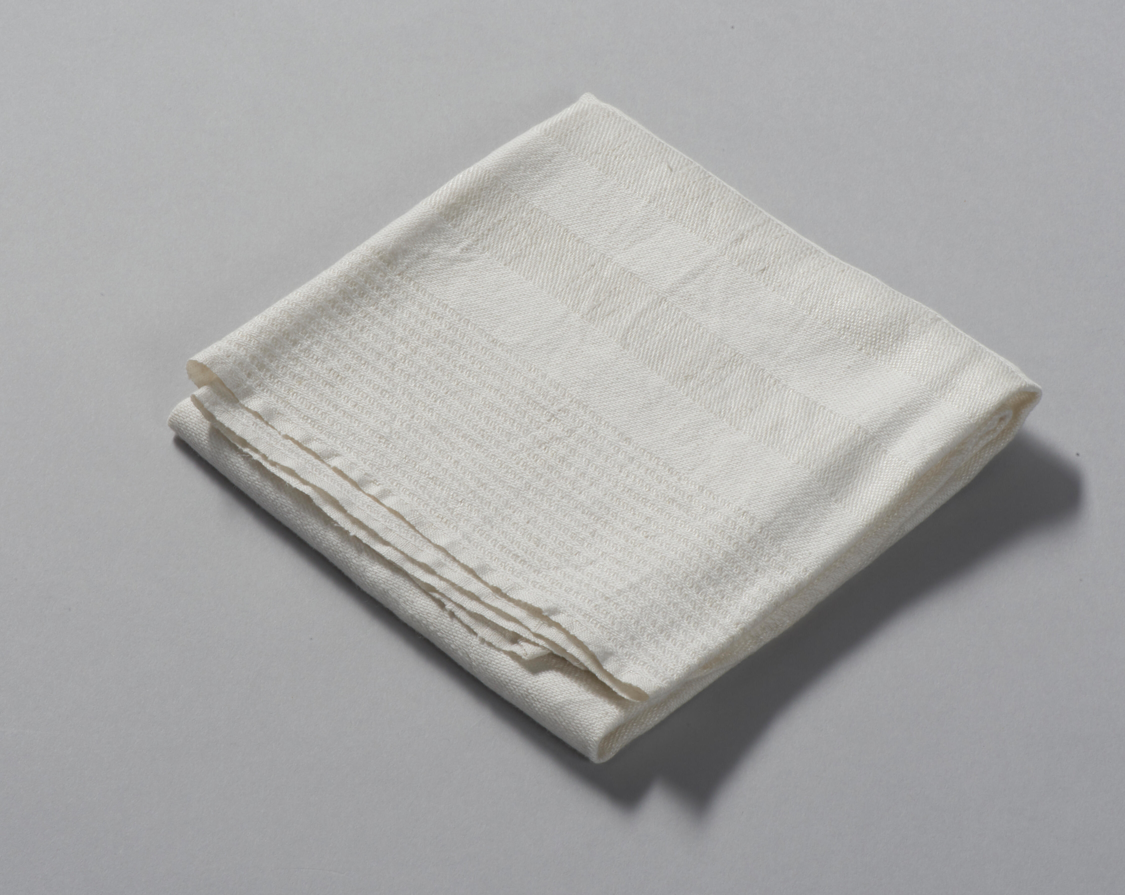 Wit linnen handdoek, rond 1900 gekocht bij Vroom & Dreesmann.