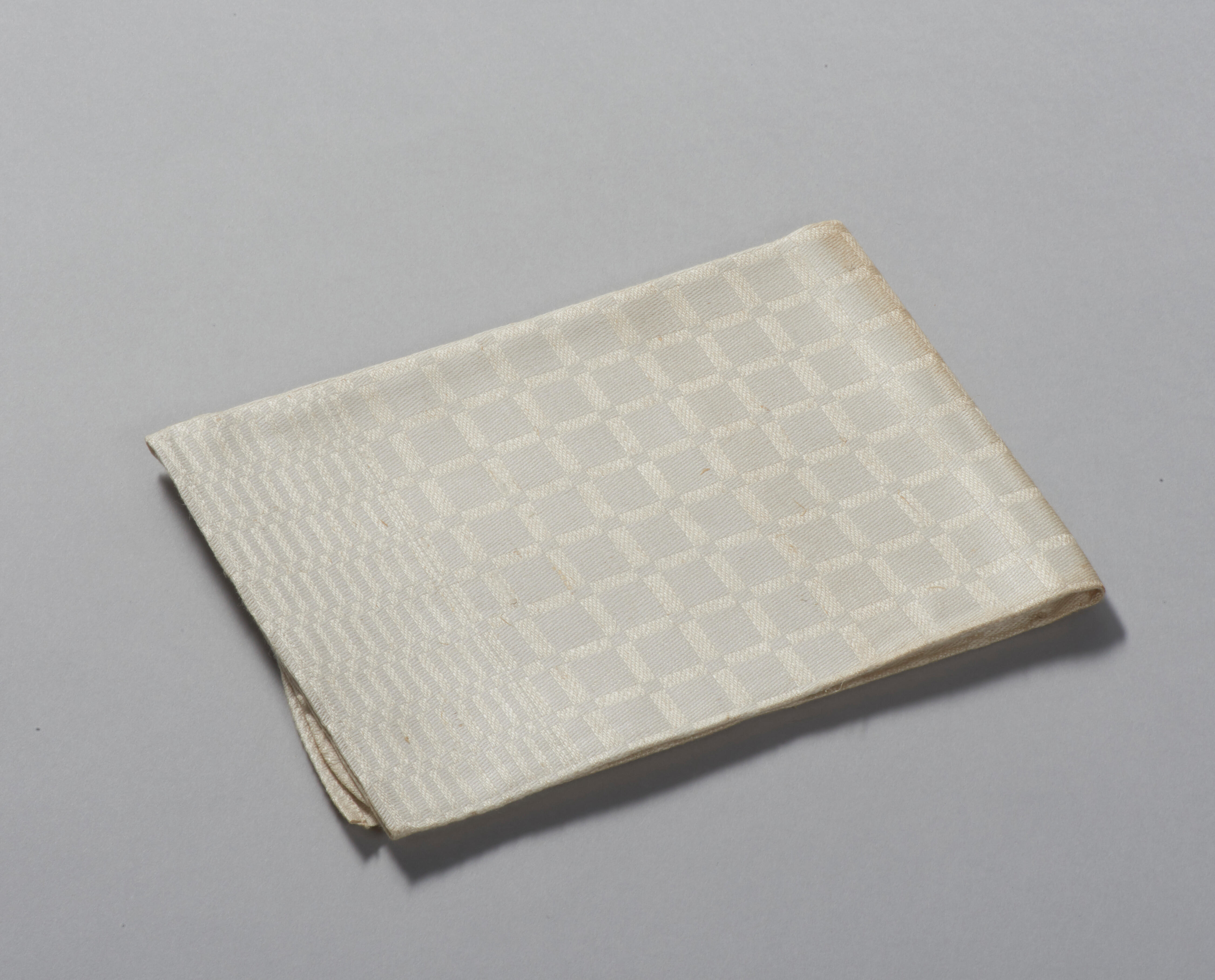 Wit linnen handdoek, rond 1900 gekocht bij Vroom & Dreesmann.