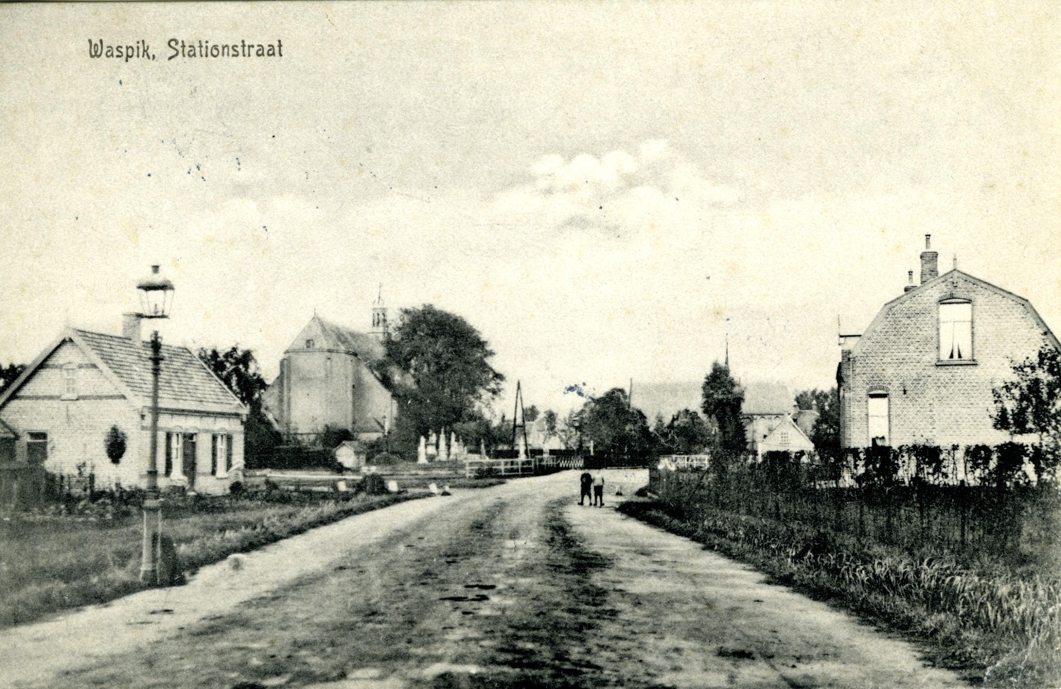 De Stationsstraat in Waspik. Op de plaats van de postzegel staat 'militair' geschreven.