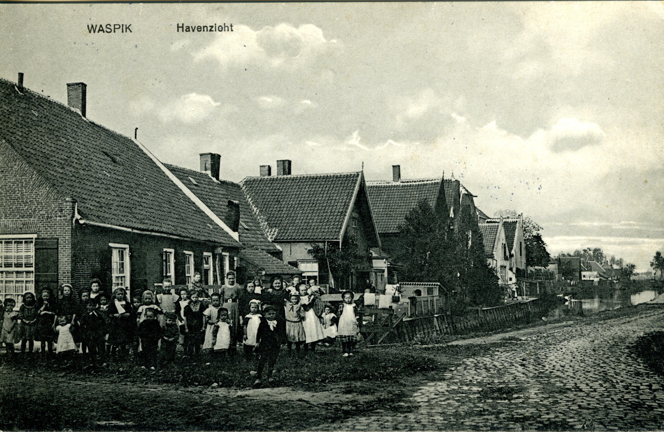 Dorpsgezicht in Waspik. Op de plaats van de postzegel staat 'militair' geschreven.