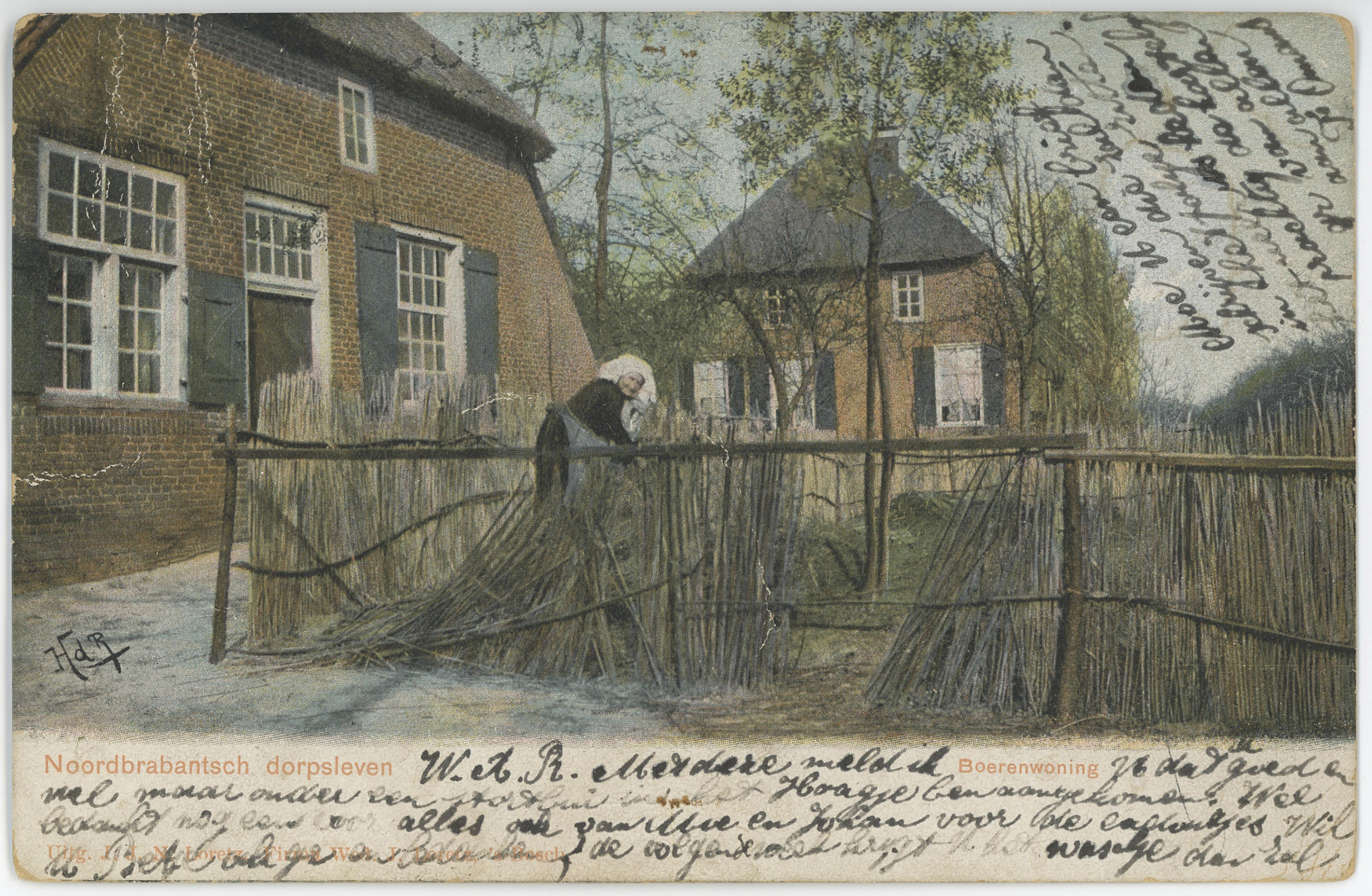 Vrouw in Noord-Brabantse dracht bij een boerderij, 1903