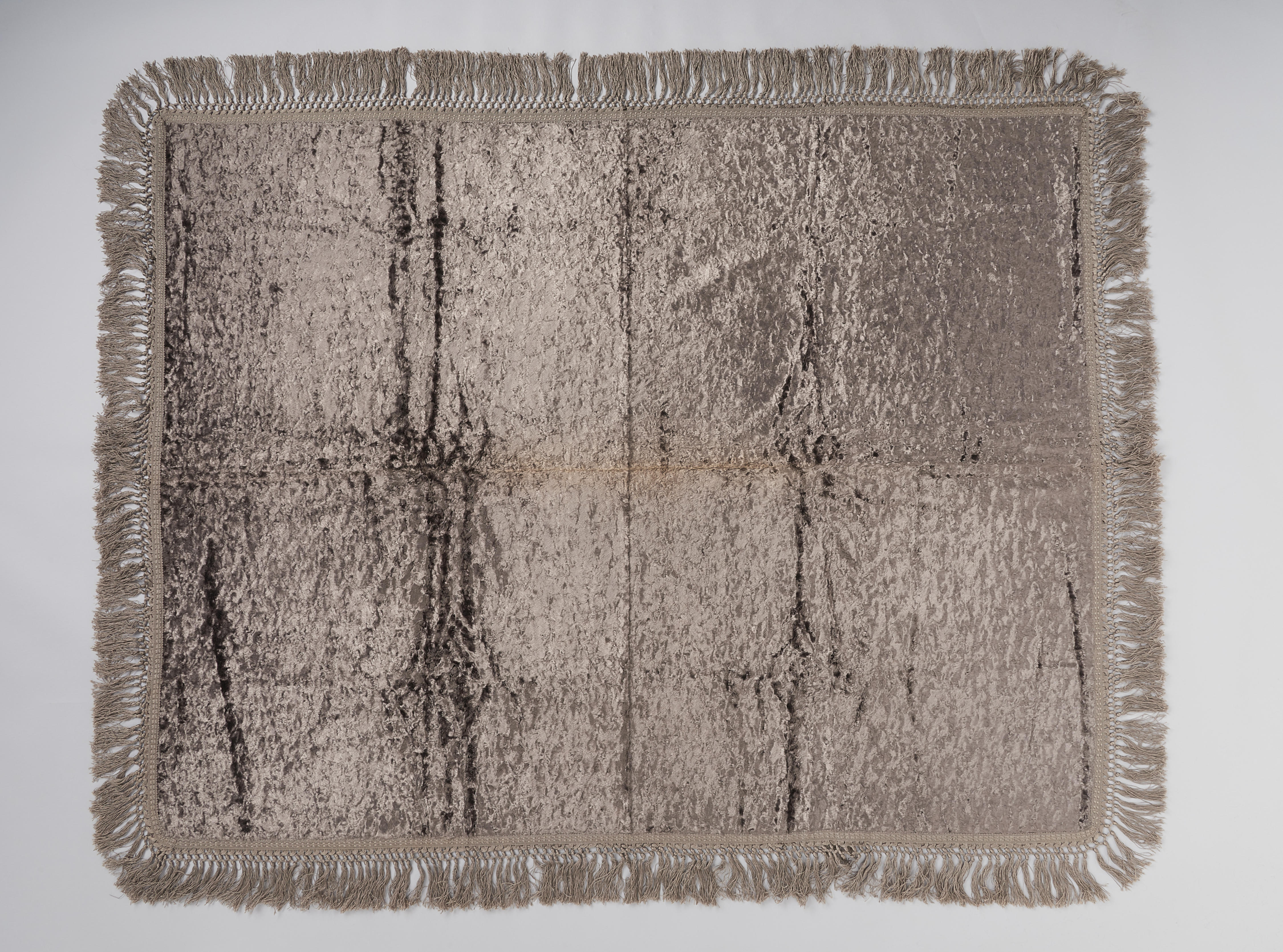 Rechthoekige omslagdoek van bruingrijze pluche, gedragen als bescherming tegen de kou door Wilhelmina Dina van de Linde (1886-1973) uit Wolphaartsdijk bij de protestantse Zuid-Bevelandse streekdracht. De pluche stof heeft een grijs katoenen basisweefsel. De doek is niet gevoerd.
