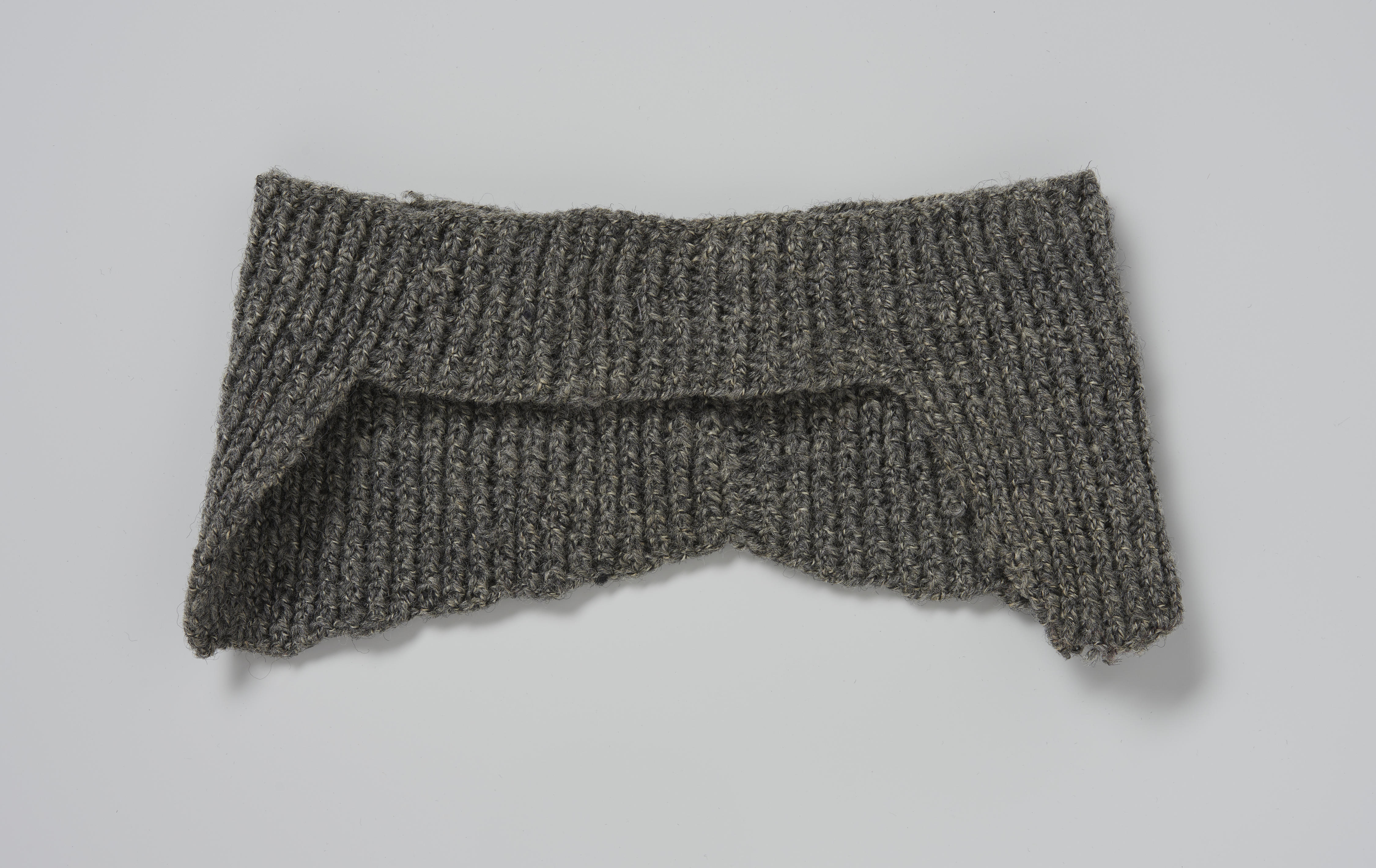 Wollen hoofdband of oorwarmer voor een vrouw. De oorwarmer is in boordsteek, 1 recht/1 averecht, gebreid en is hierdoor een beetje elastisch.