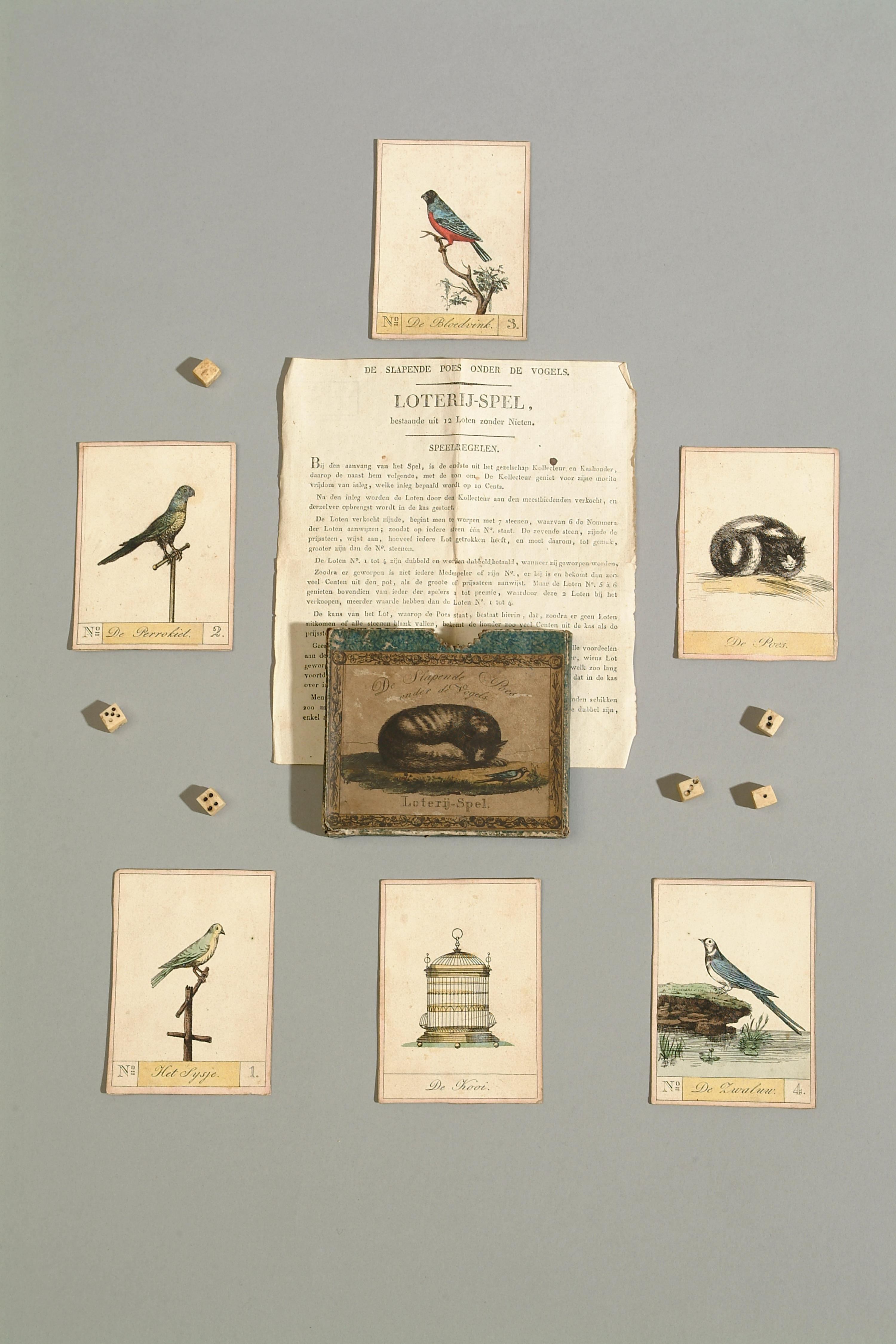 Dit loterijspel bestaat uit een kartonnen doosje met twaalf ingekleurde kaarten, zes dobbelstenen en een blaadje met de spelregels. Op de kaarten staan tien vogels, een kooi en een kat. Het werd omstreeks 1825 uitgegeven door uitgever C.A. van Arum in Amsterdam. In tegenstelling tot het oorspronkelijke achttiende-eeuwse loterijspel is dit spel slechts een amusant ...