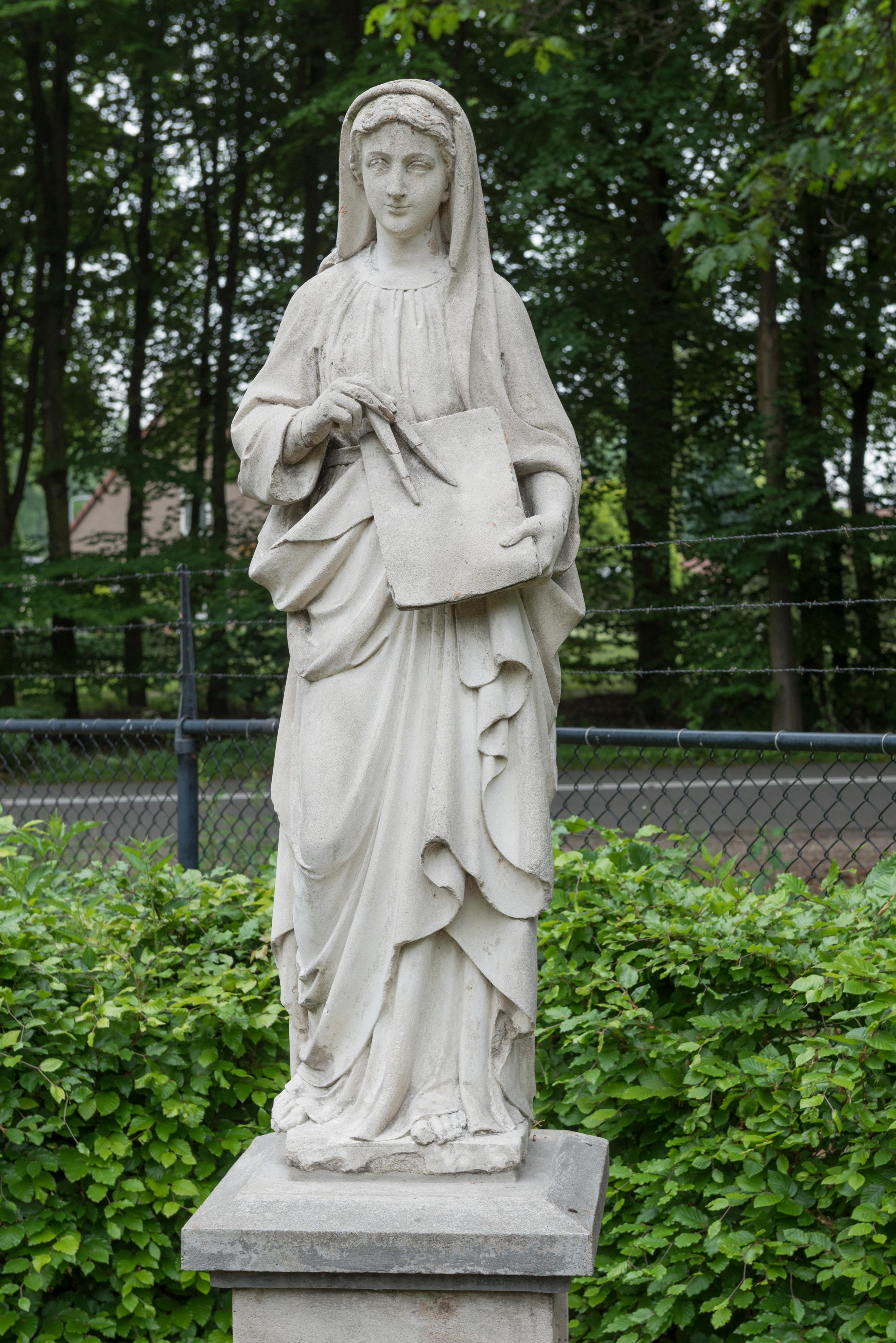 In de formele tuin bij de oude hoofdingang staan twee negentiende-eeuwse beelden die muzen voorstellen. In 1943-1945 zijn deze beelden geplaatst in een tuintje in de Zaanse buurt. Oorspronkelijk zijn ze gevelbeelden geweest op bijvoorbeeld een balkon of boven een ingangspartij. Dit beeld stelt een vrouw met een vel tekenpapier en passer voor. Het staat ...