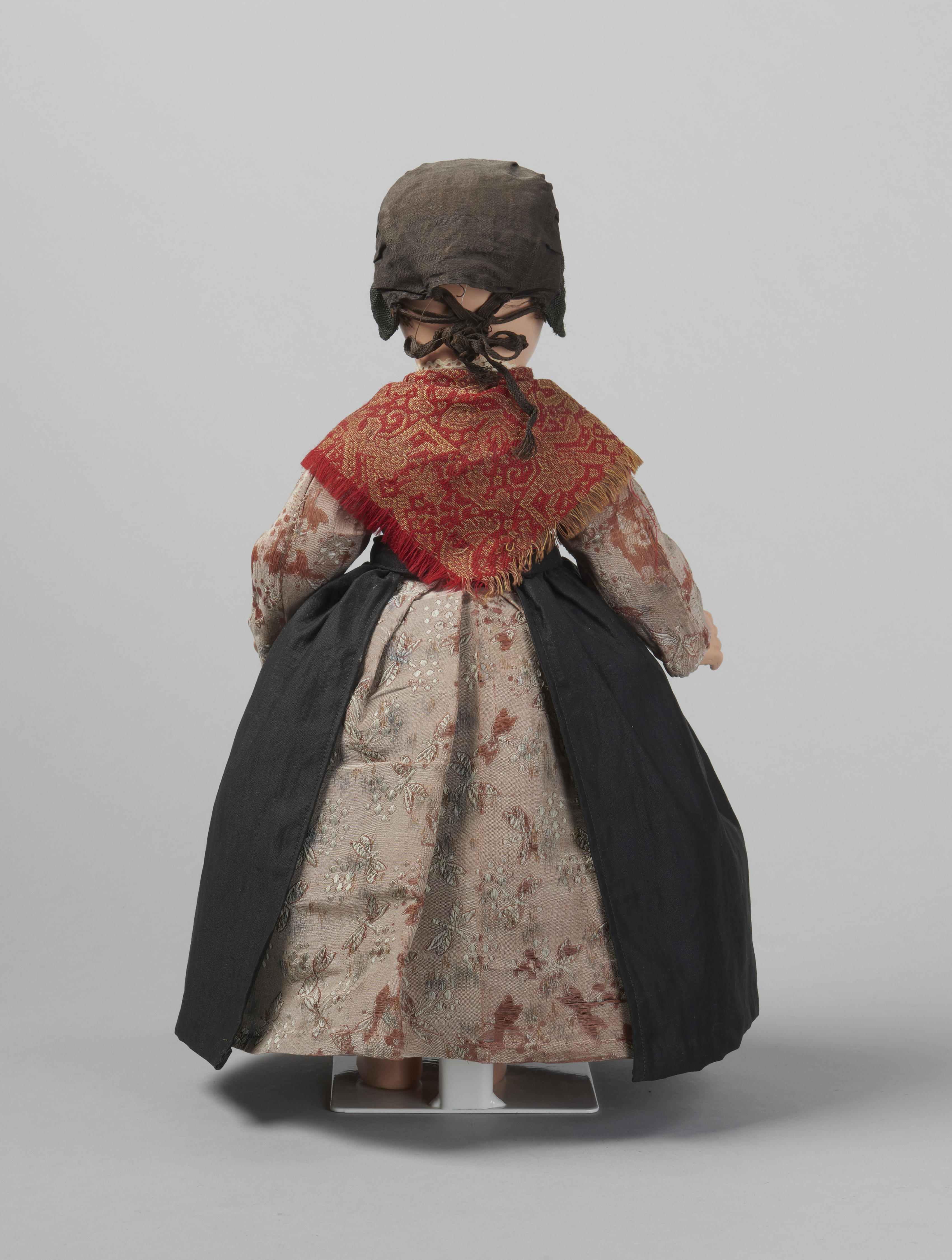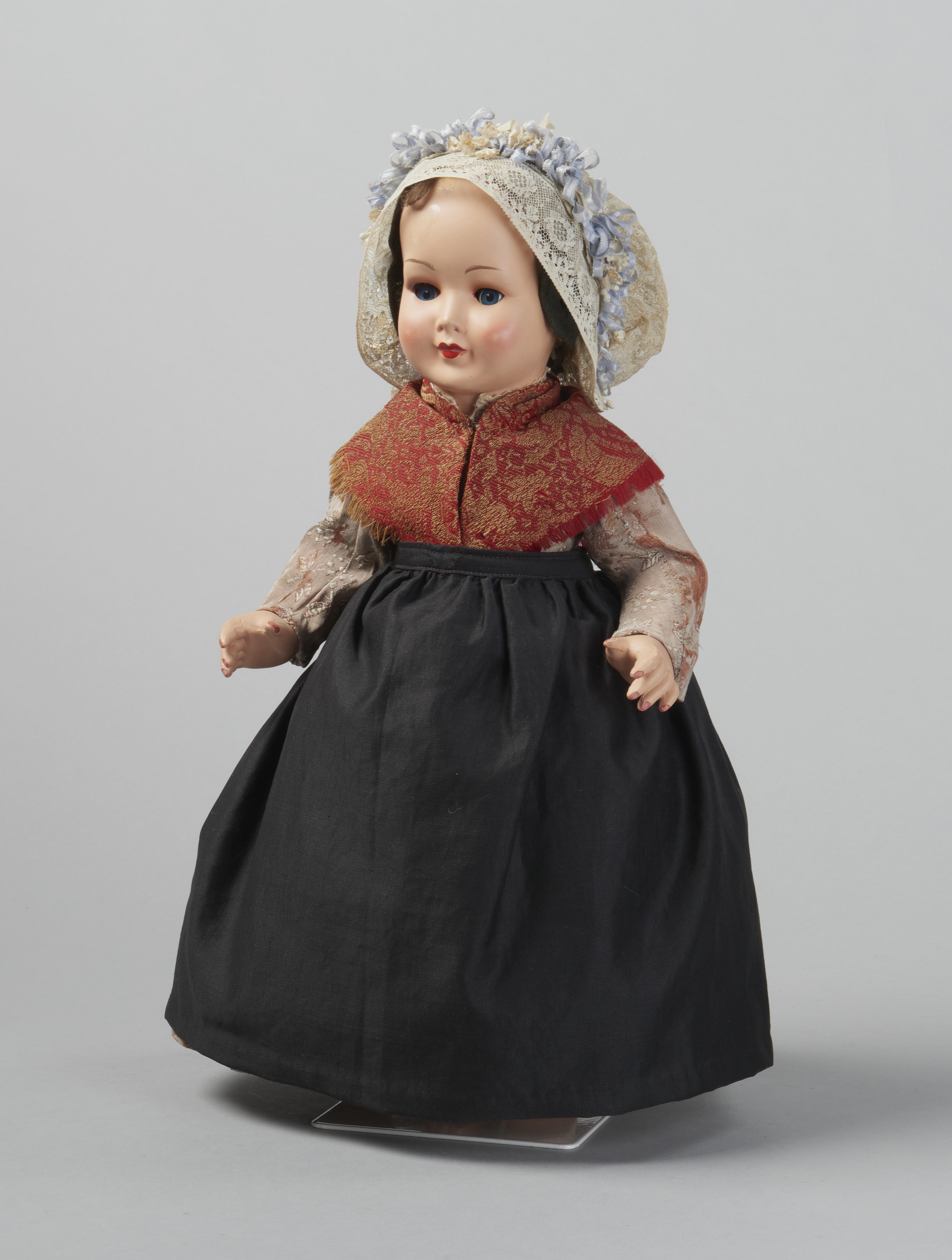Pop, gekleed als een vrouw uit het westelijk deel van Noord-Brabant in zondagse dracht.