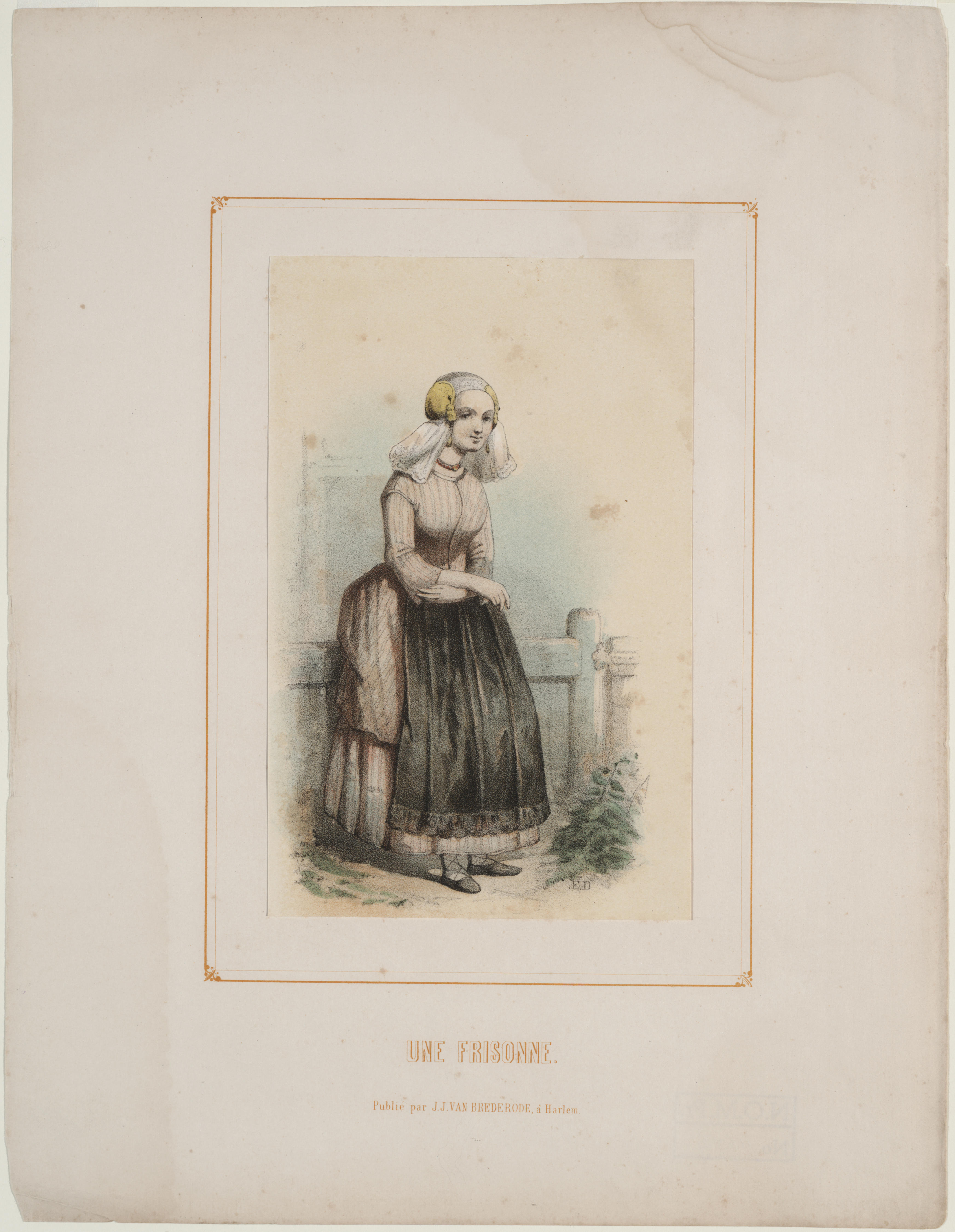 Prent van een Friese vrouw in streekdracht.