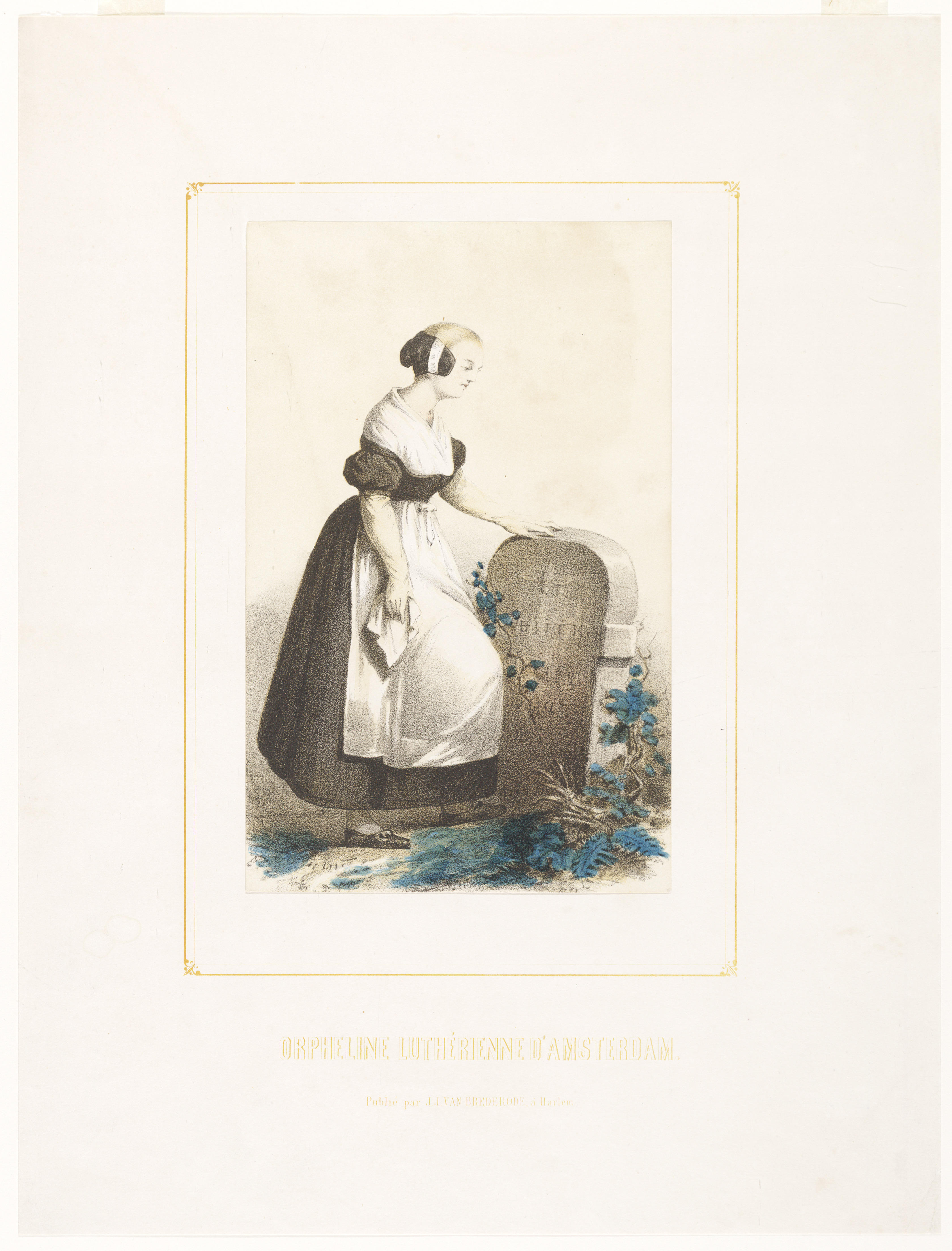 De prent is een meerkleuren steendruk van Jan Striening, uitgegeven door J.J. van Brederode in Haarlem. Op de prent staat een Luthers weesmeisje uit Amsterdam afgebeeld.