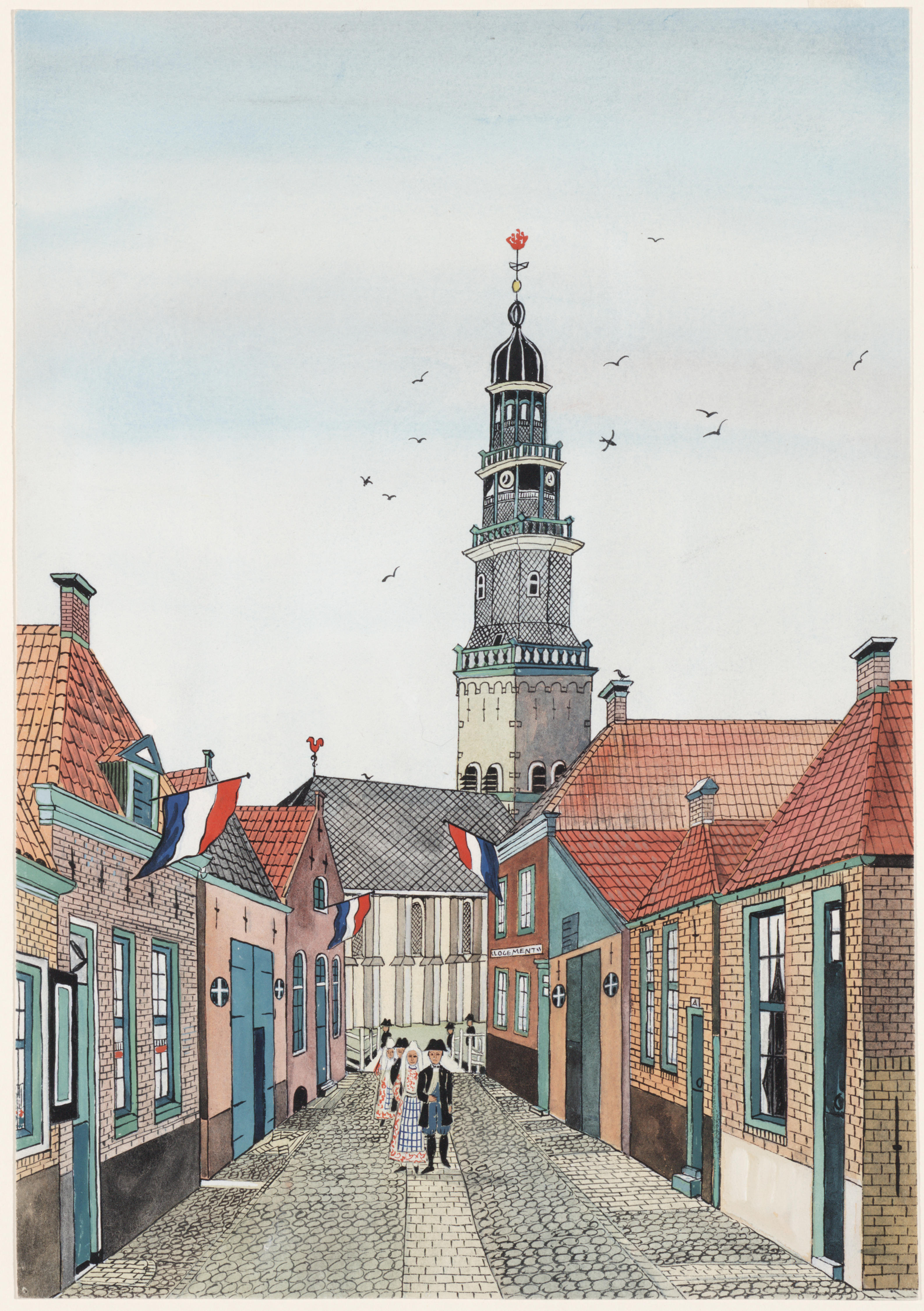 Nicolaas Huppes, hoofdrestaurator van het Rijksmuseum in Amsterdam, kopieerde in 1949 in opdracht van het Nederlands Openluchtmuseum diverse werken. Deze tekening toont een bruidsstoet in Hindeloopen. De kopie is naar werk van de Hindelooper schilder Hendrik Lap (1824-1874).