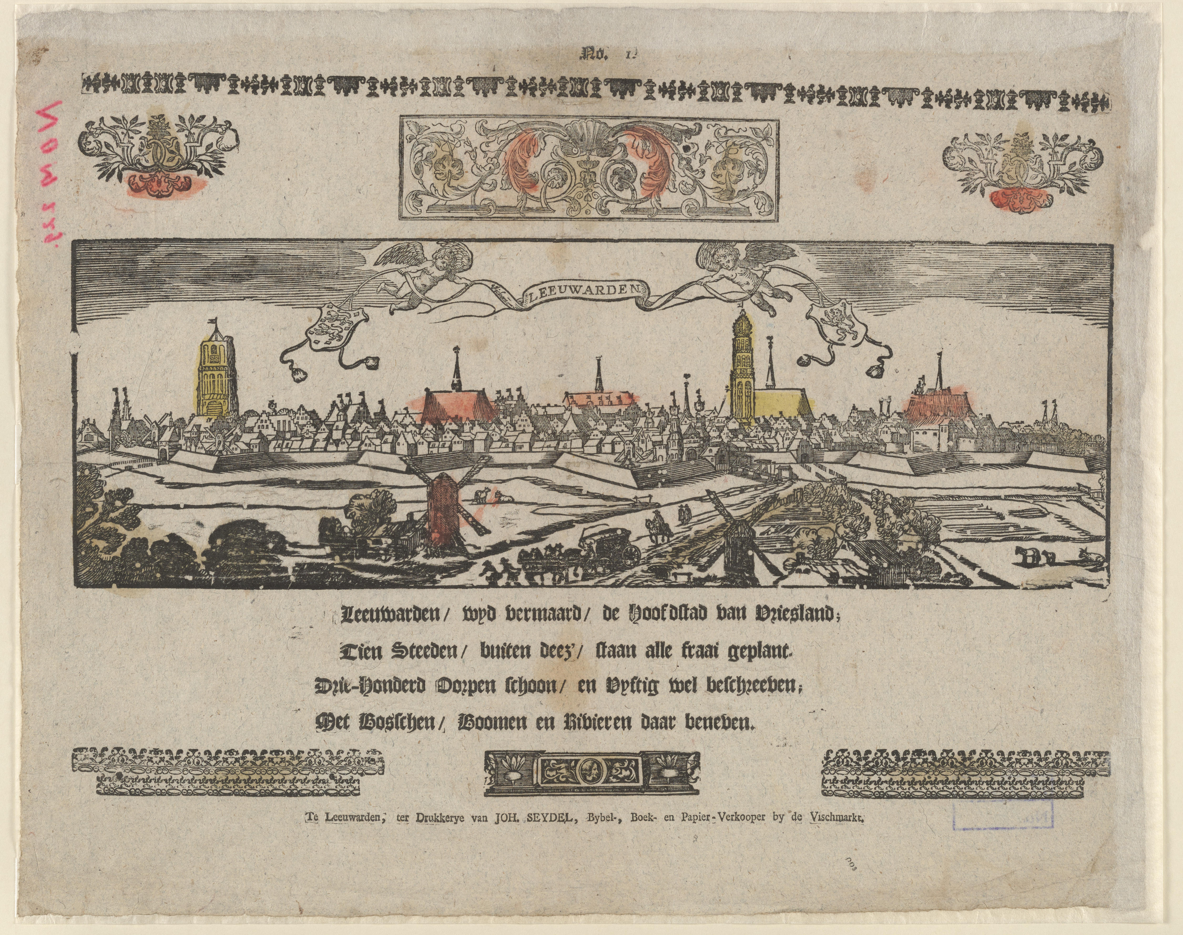 Gezicht op Leeuwarden, aangevuld met ornamenten - No. 1