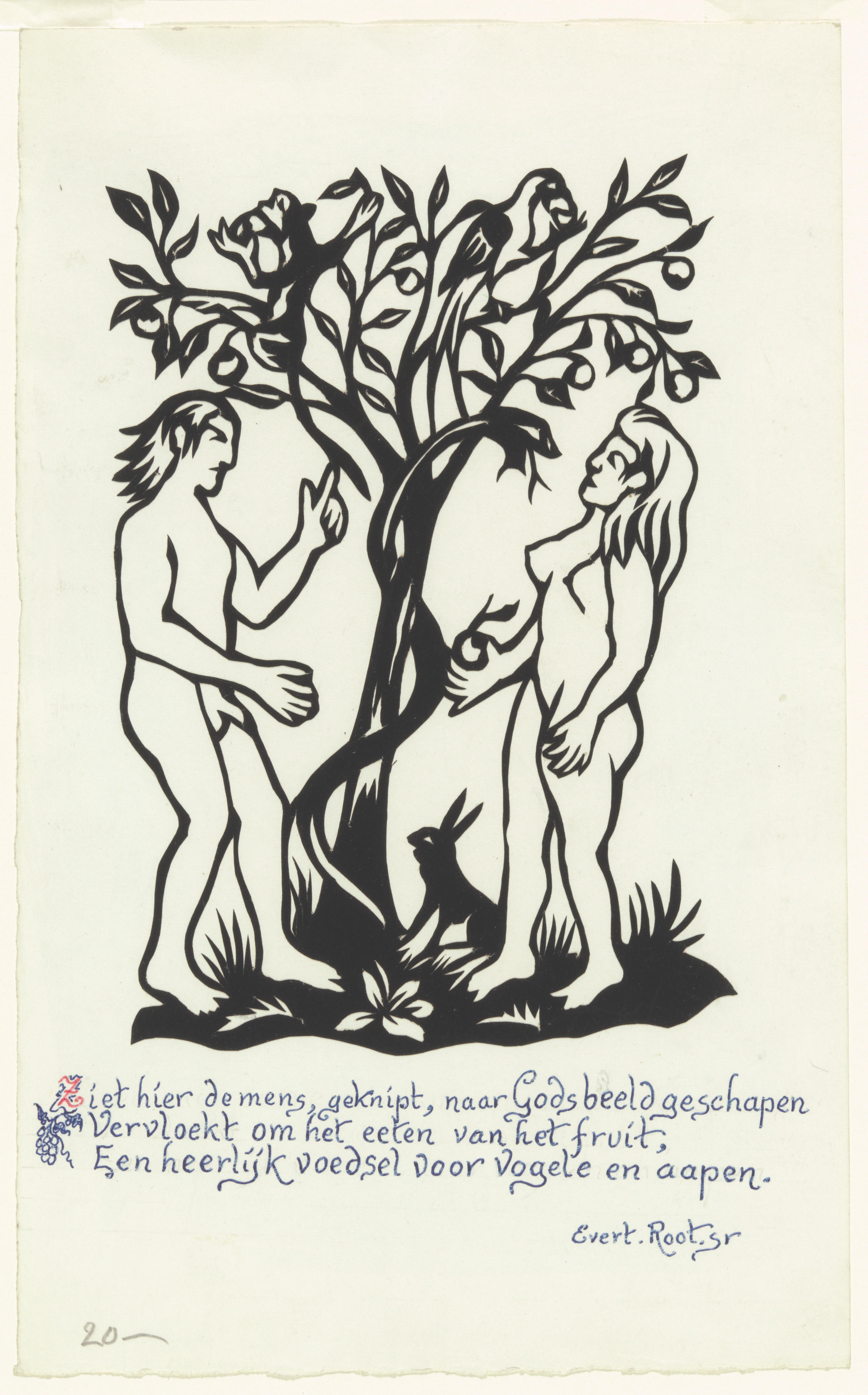 Knipprent met voorstelling van Adam en Eva in het paradijs, 1950–1978