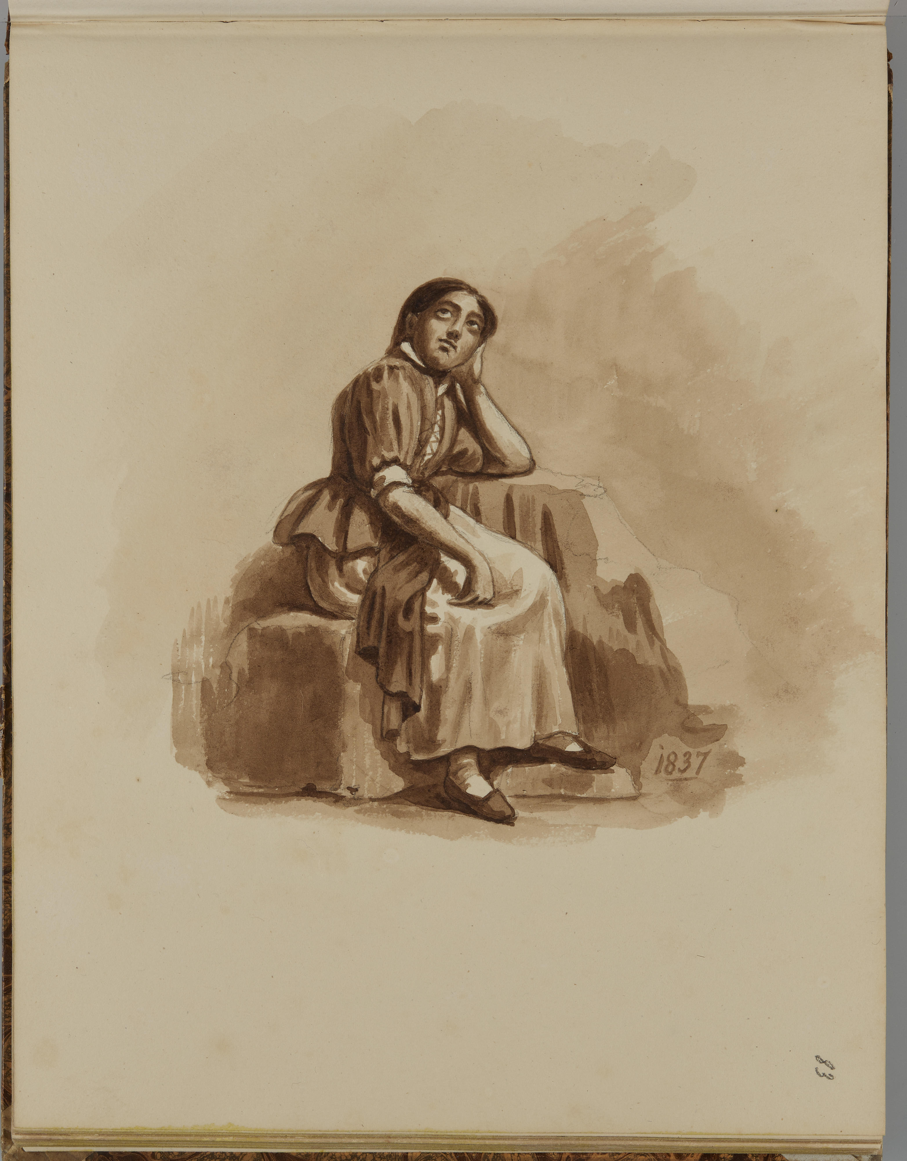 Tekening van een zittende vrouw, 1837