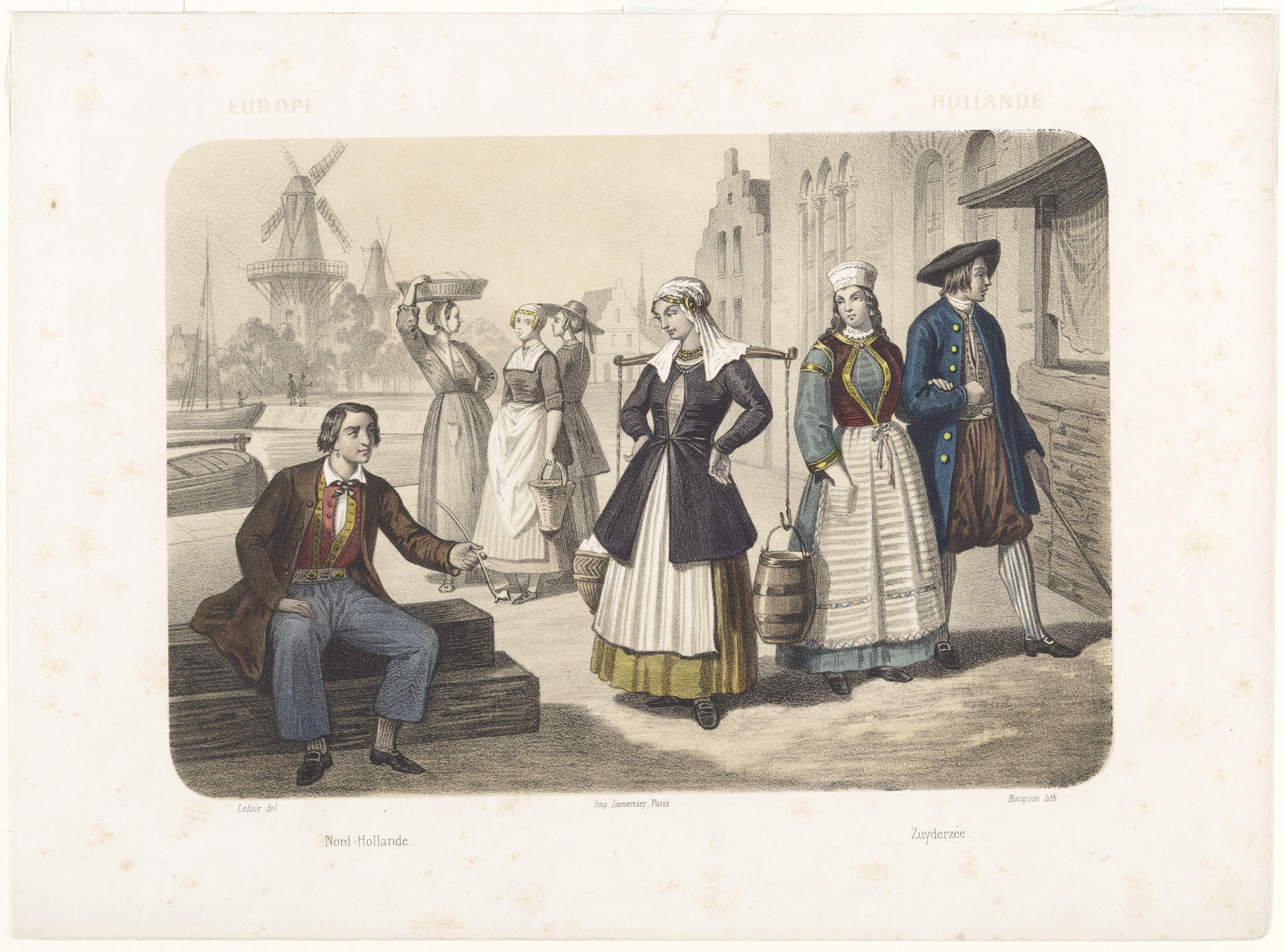 Diverse streekdrachten van Noord-Holland en het Zuiderzeegebied, circa 1850