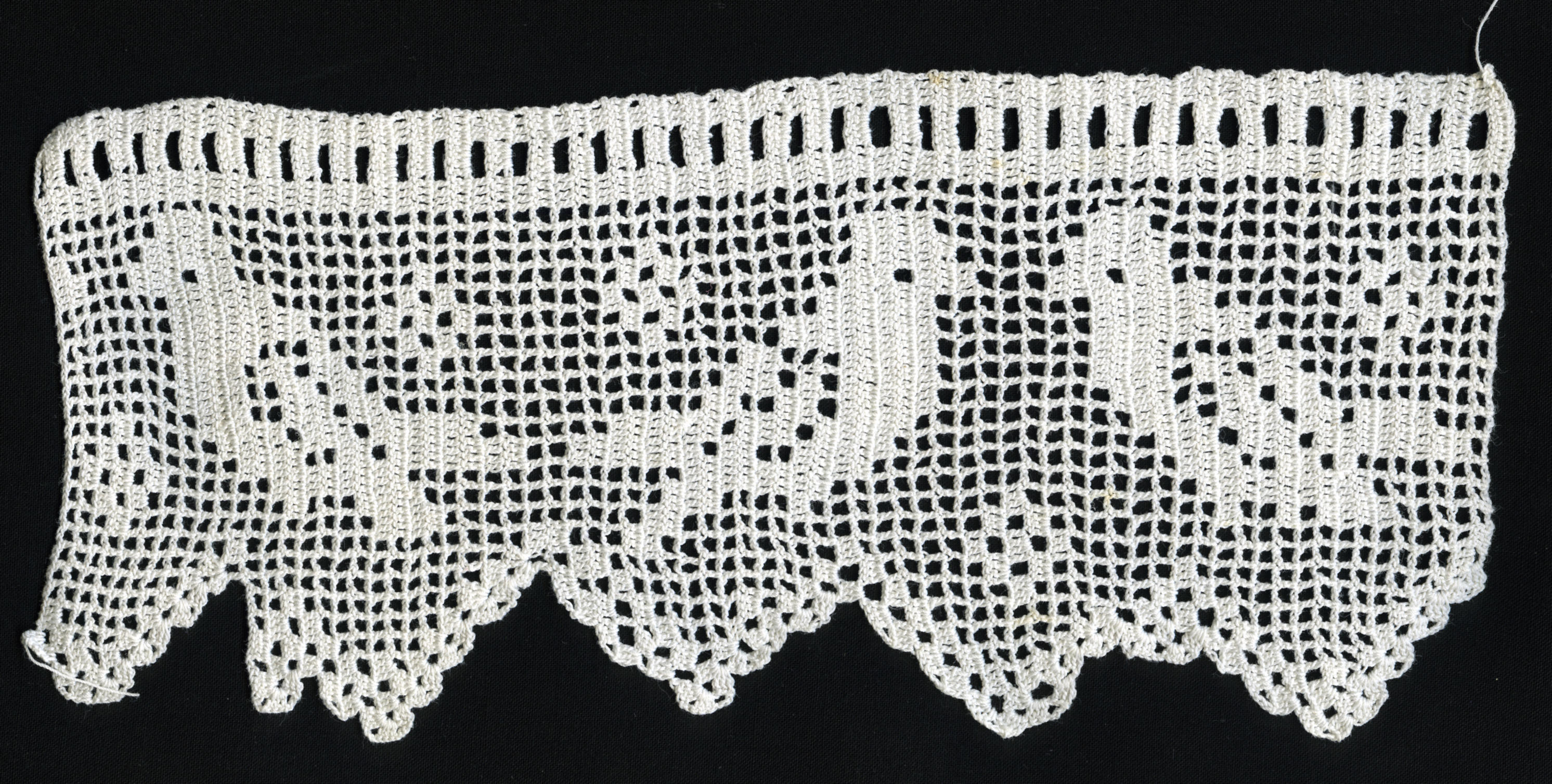 Strook met vogelmotief, waarschijnlijk gehaakt als proeflapje.