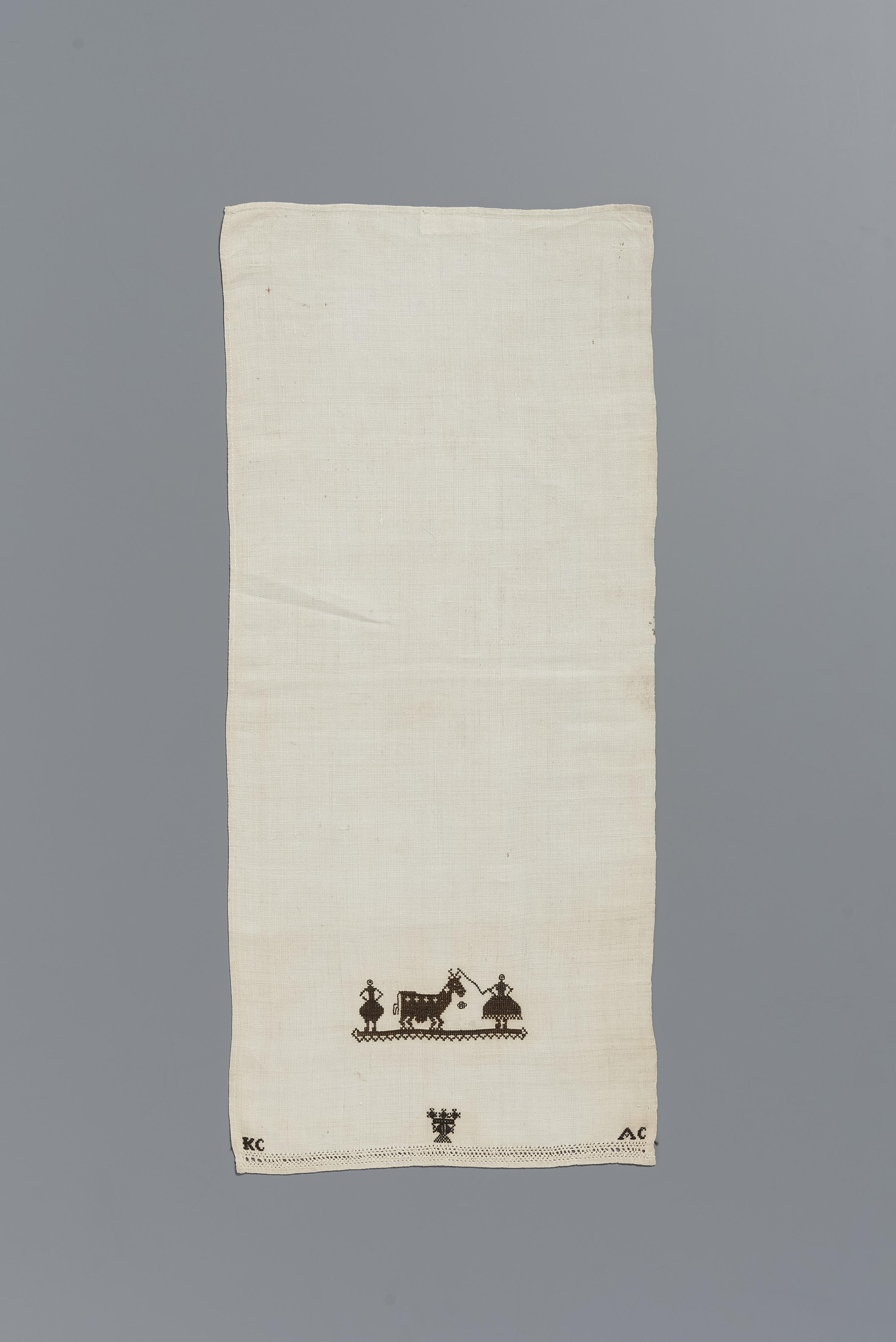 Langwerpig kleedje, een zogenoemd spreitje. Dergelijke spreitjes werden op Marken gebruikt bij het opmaken van het pronkbed, waarbij er een kort spreitje in het midden hing met aan weerszijden een langwerpig spreitje zoals dit.