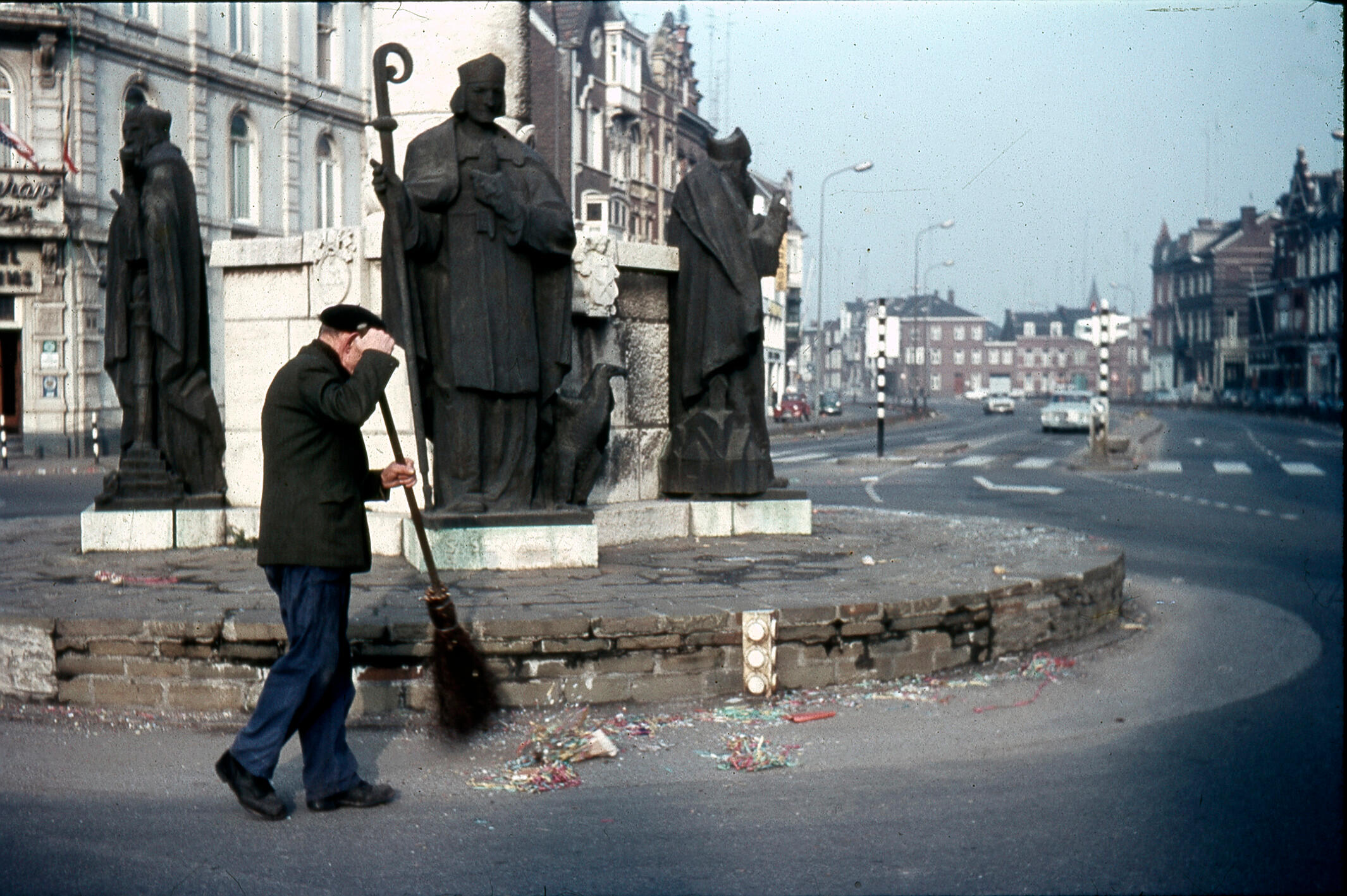 Straatveger na carnaval, Maastricht, 1967 (diapositief)