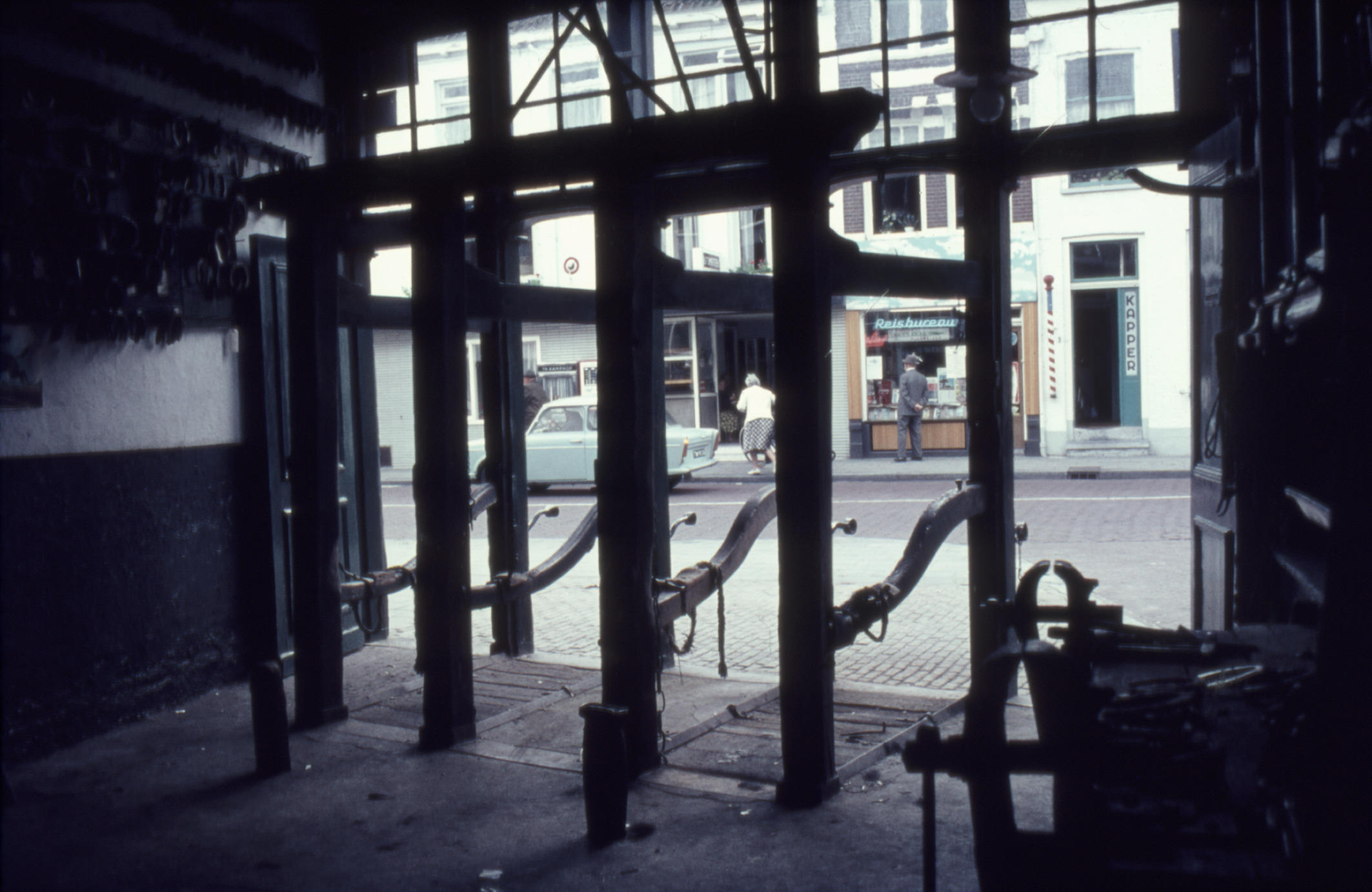 De ingebouwde travaljes in de hoefsmederij van Th. A. Poppe aan de Luttekestraat in Zwolle.