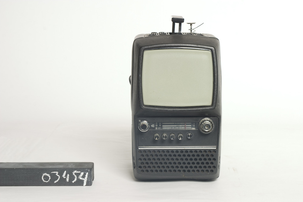 Orbiter 403DE draagbare televisieontvanger, 117/237V en 12V, smal van vorm en in kunstof kast. Onder het scherm zit een horizontaal transparant venster voor zenderkeuze, met aan beide kanten een zilverkleurige draaiknop, en daaronder vijf kleinere draaiknoppen. Beneden aan de voorzijde zit een raster van gaatjes en aan de bovenkant heeft het toestel twee antennes en ...