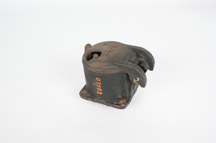 Hazemeyer 4-polige contactdoos, verbrand. Niet waterdicht materiaal gemonteerd op een vochtige muur. Schenking van: GEB Rotterdam.