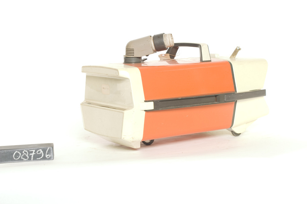Ruton elektrische sledestofzuiger, model RO 3631 P., 220V - 600W - 50Hz, oranje, bruin en crèmekleurig. Het langwerpige en hoekige apparaat staat op drie wieltjes en heeft op de voorkant een witte sticker met '508796'. Merktekens: 716. Geen originele contactstop.