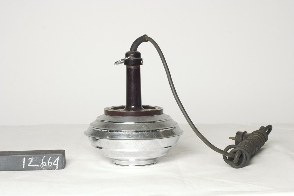 Gnom elektrische ultrasone wasvibrator, 230V - 30W - 50Hz, geheel gesloten, van metaal en bruine kunststof buis waar de kabel met stekker uitkomt. Wast door geluidsgolven. Gewicht: 3.4 kg. Fabr.serienr: 7653. Merktekens: Made in Western Germany.