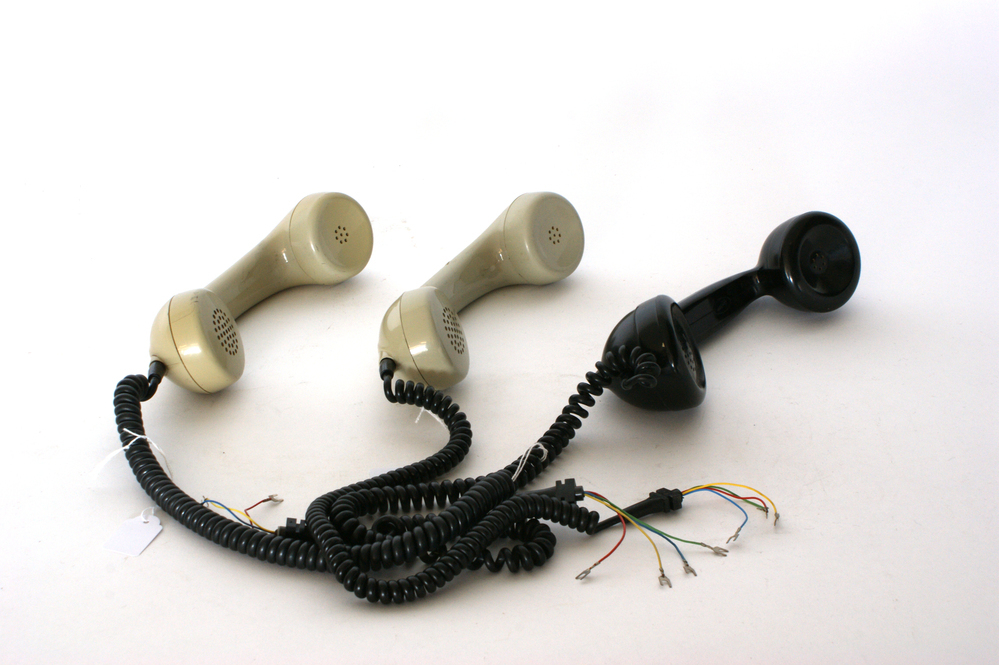 3 Telfoonhoorns met een gelijksoortig uiterlijk. A: Zwarte telefoonhoorn van bakeliet. De hoorn is van het merk Ericsson. Behorend bij type 1951. Dit type telefoon is gemaakt als wand en tafelmodel. De eerste één a twee jaar dat het type 1951 in productie was, was deze voorzien van het oude model Ericsson hoorn. Daarna is ...