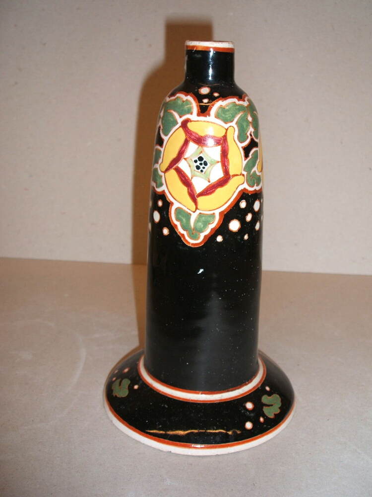 Lampvoet, met veelkleurig driedelig floraal / ornamentaal decor op een zwarte ondergrond