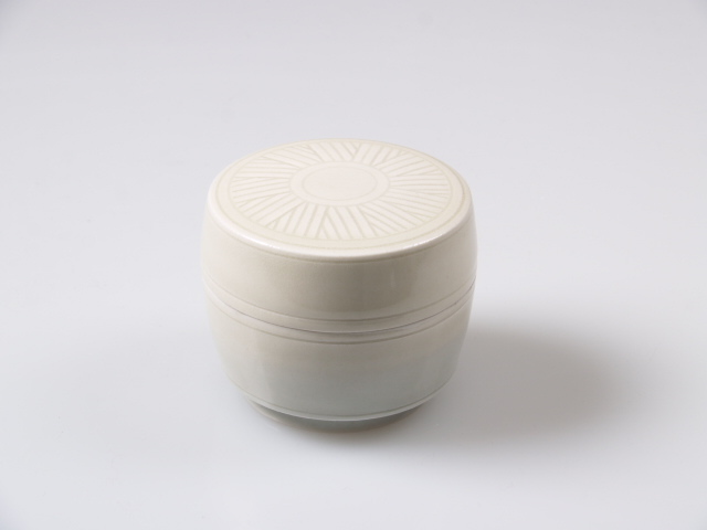Doosje met plat deksel waarin ingegraveerd lineair decor.