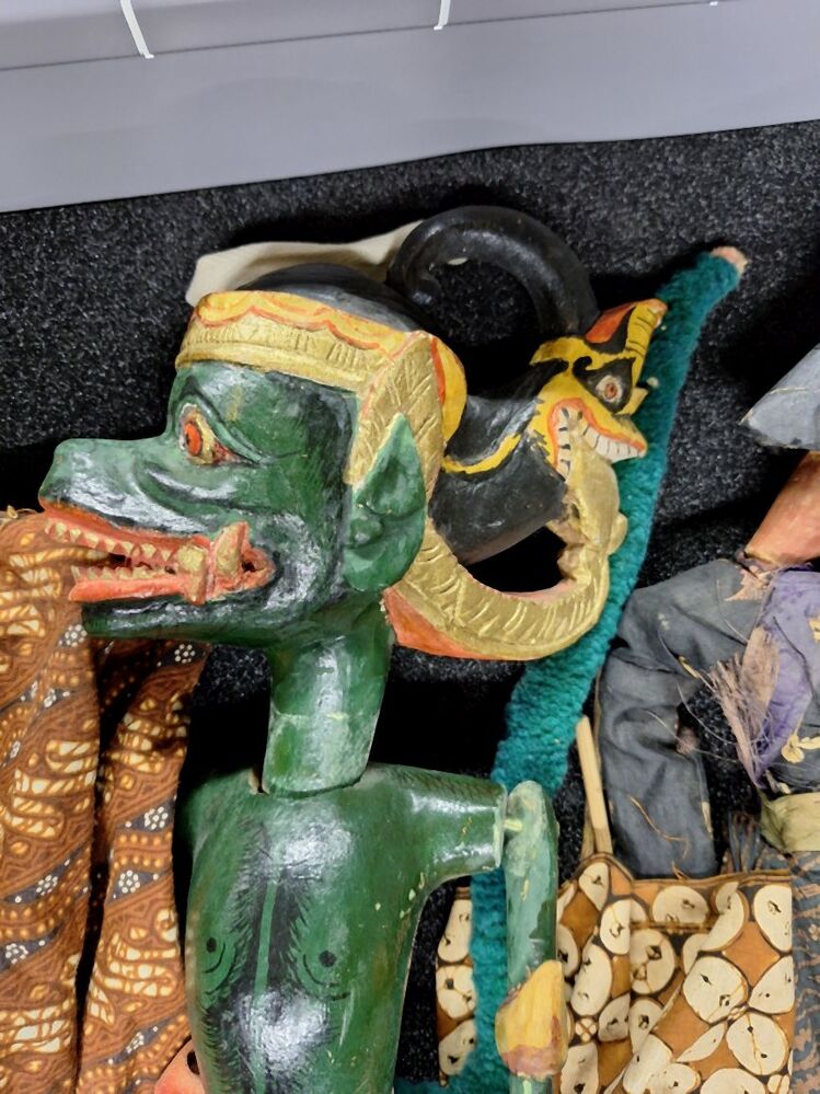 Wajang golek pop (aap, waarschijnlijk Hanila) van hout en textiel, Java, één van 42