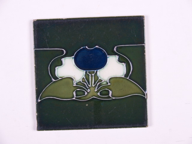 Randtegel met een gestileerd decor van een bloem met vruchten op een groen fond