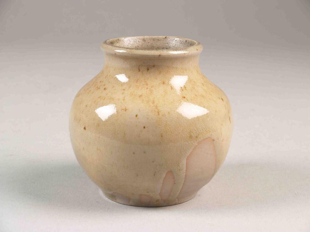 Bolle vaas met korte hals overdekt met geel glazuur