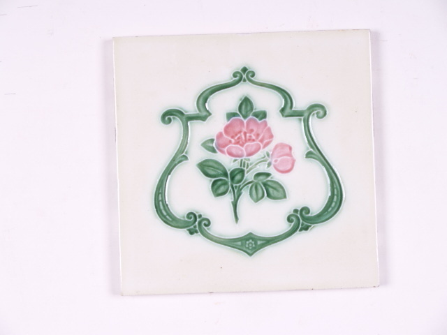 Tegel met een polychroom floraal decor in een cartouche