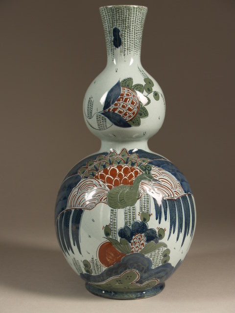 Kalebasvaas met polychroom decor van kraanvogel met gespreide vleugels