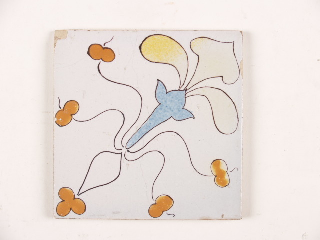 Lambriseringstegel met een polychroom floraal ornamentdecor