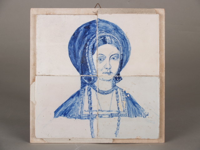 Tegeltableau met een blauwwit portret van Johanna de Waanzinnige