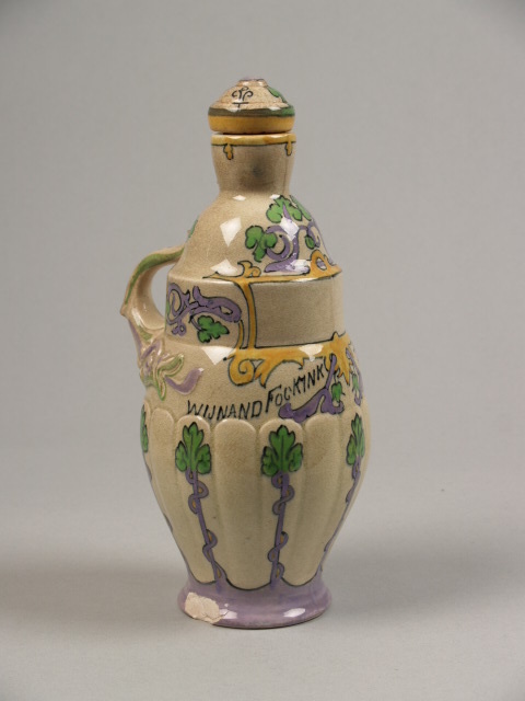 Kruik met floraal decor en opschrift : ' Wijnand Fockink Amsterdam 1679'