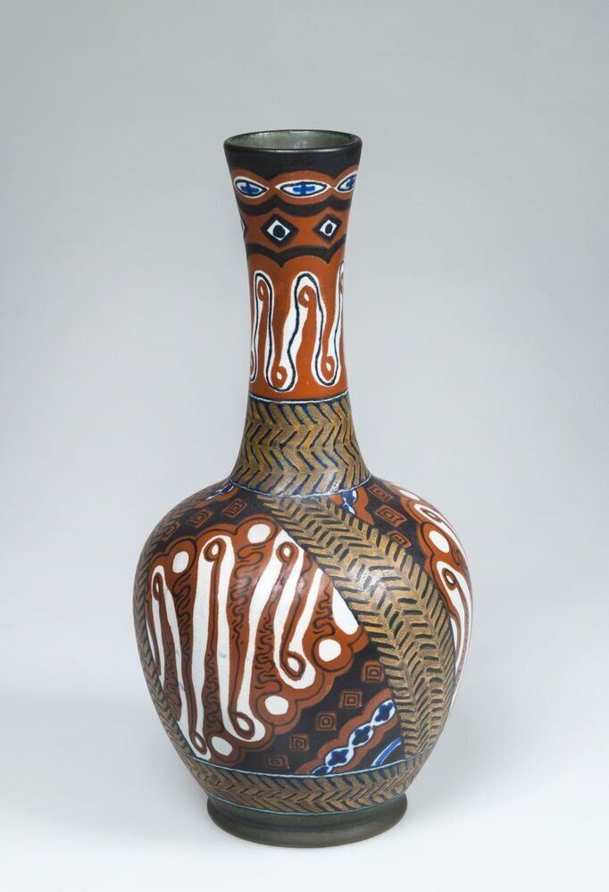 Vaas met een abstract decor dat ontleend is aan batikmotieven, decor Insulinde