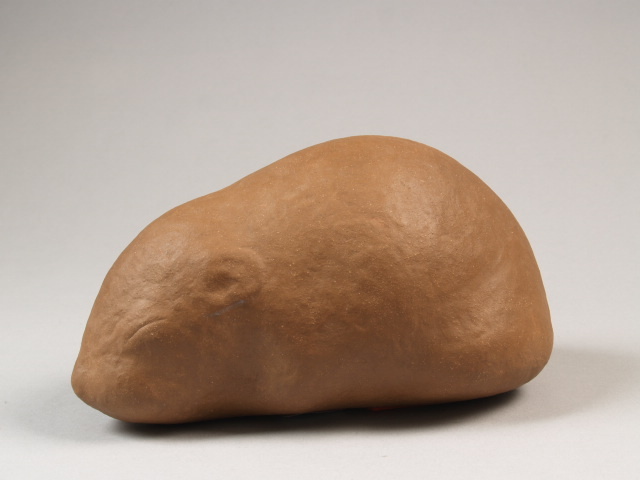 Beeld voorstellende een (pasgeboren) cavia, overdekt met bruine engobe
