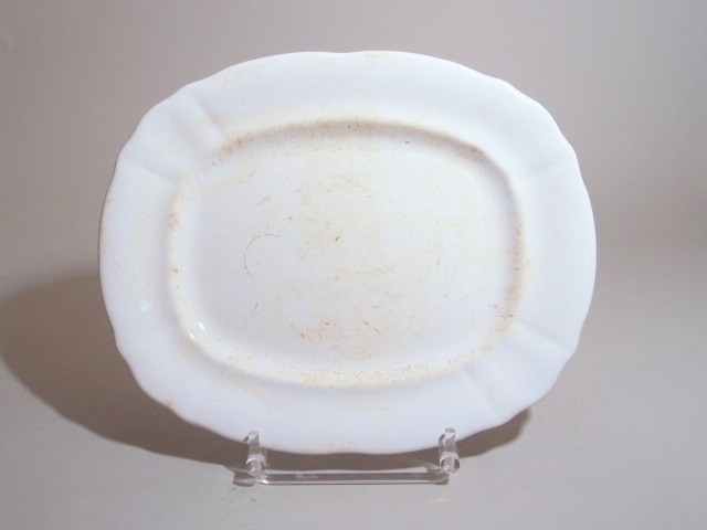 Rechte bodem, verdiept in de brede platte pseudo-voetring; recht spreidende wand met gekartelde rand. Materiaal: wit aardewerk met transparant glazuur