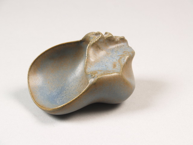 Abstracte vorm. Materiaal: steengoed met van bruin naar blauw verlopend matglazuur.