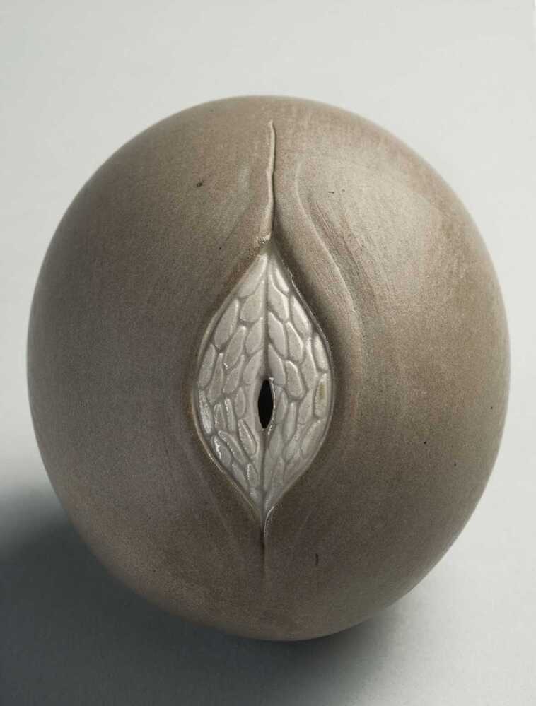 Beeld met de titel Ei (dubieus) in de vorm van een ontkiemend zaad.