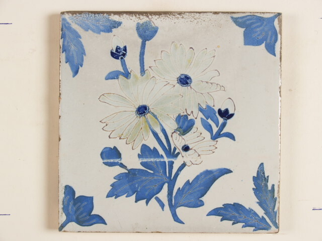 Tegel met polychroom decor van een bloem