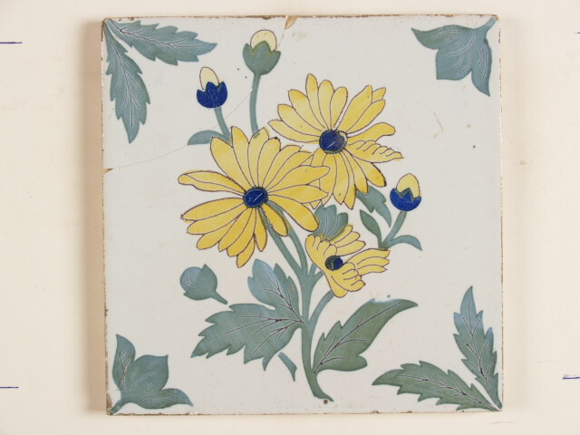 Tegel met polychroom decor van een bloem