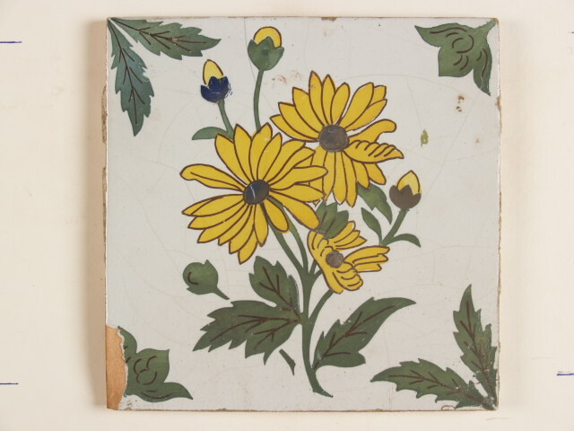 Tegel met polychroom decor van een bloem