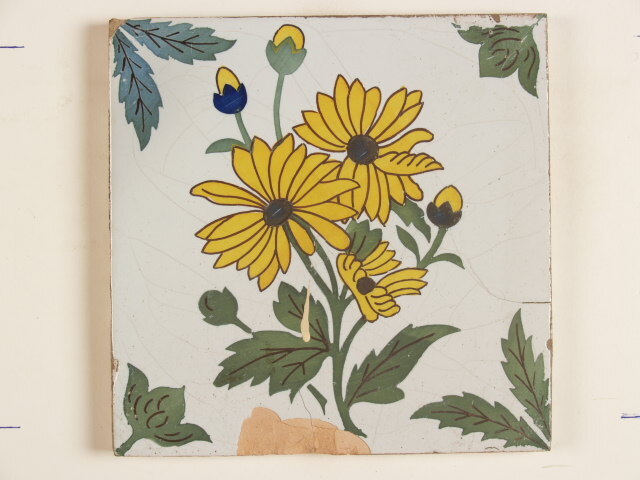 Tegel met polychroom decor van een bloem