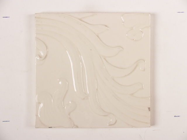 Tegel, crèmekleurig met een gestileerd floraal ornamentdecor