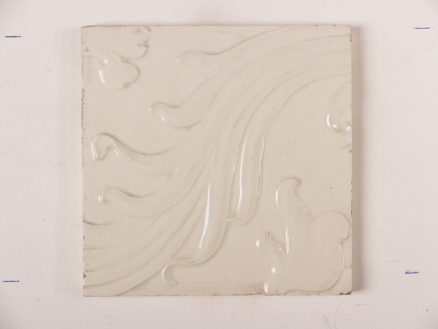 Tegel, crèmekleurig met een gestileerd floraal ornamentdecor