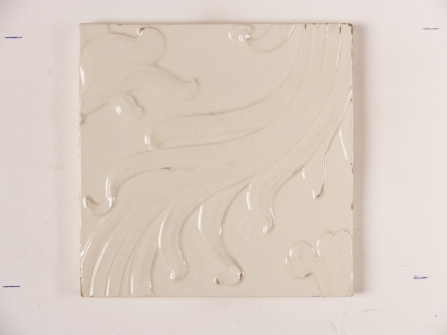 Tegel, crèmekleurig met een gestileerd floraal ornamentdecor