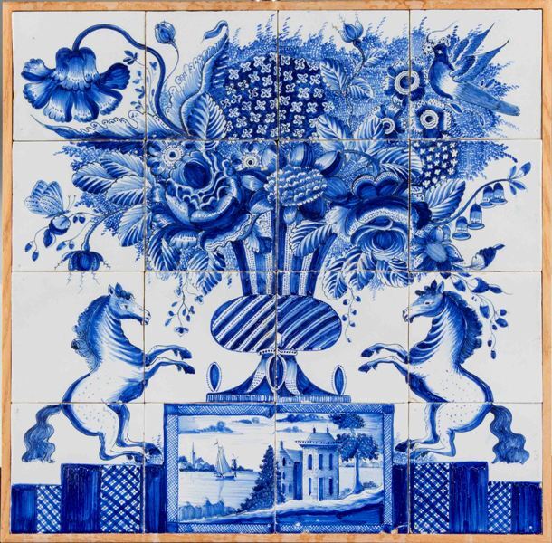 Tegeltableau met een blauwwit decro van een bloempot